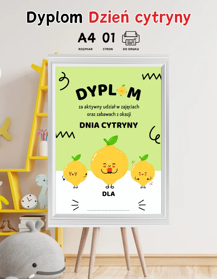 Dyplom Dzień cytryny A4 Pdf do druku