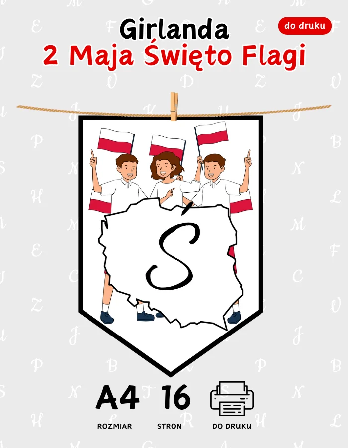 Girlanda 2 Maja Święto Flagi A4 Pdf do druku