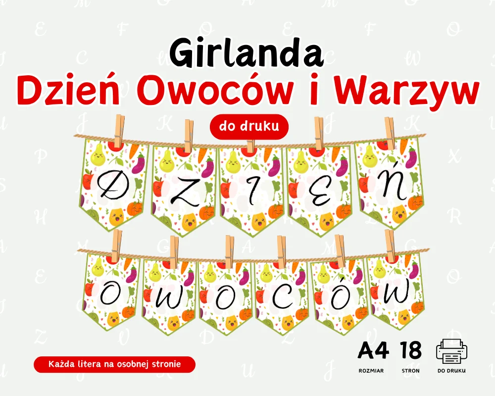 Girlanda Dzień Owoców i Warzyw A4 Pdf do druku
