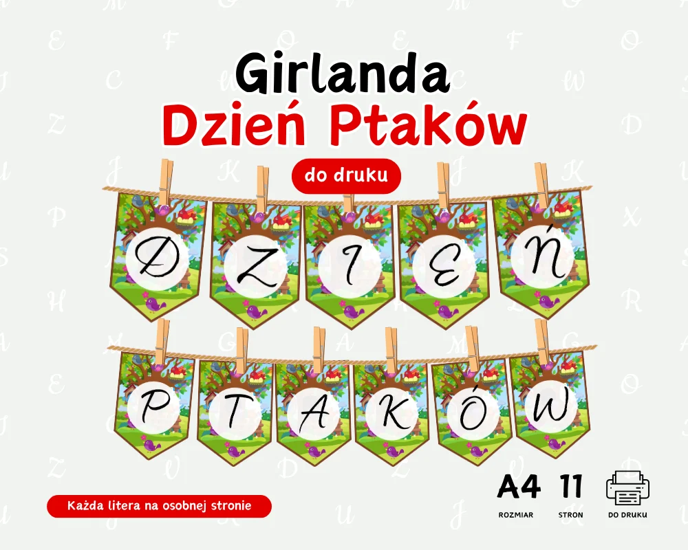 Girlanda Dzień Ptaków A4 Pdf do druku