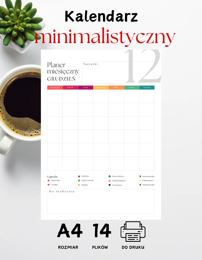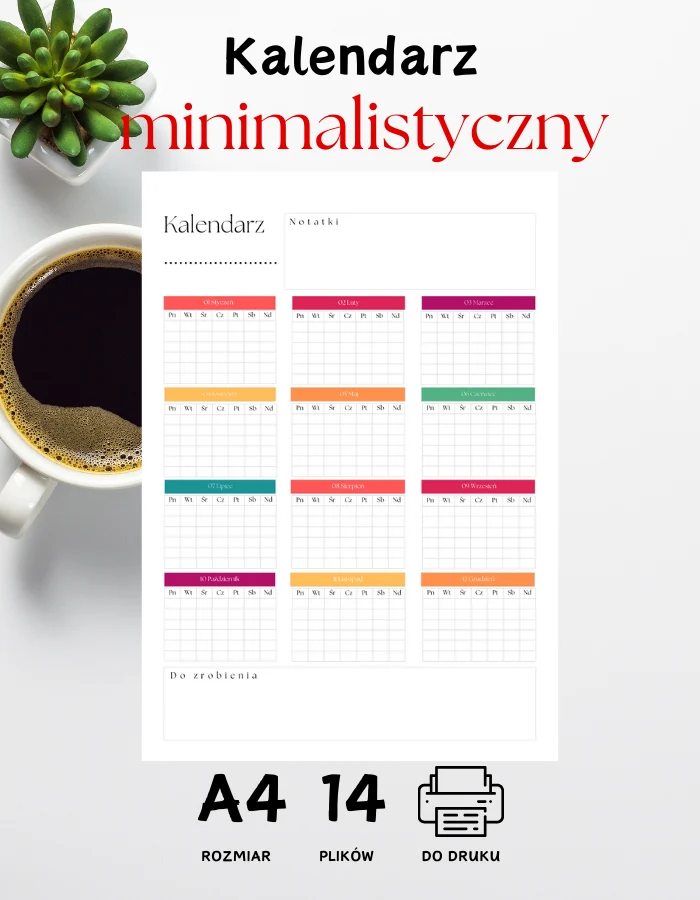 - Kalendarz roczny z miejscem na notatki, do zrobienia